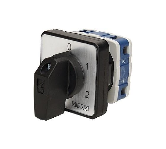 Переключатель Emas многоступенчатый 25А (0-1-2), 1 полюс, рамка 48х48мм, 400В AC, IP54 PSA025KS132S