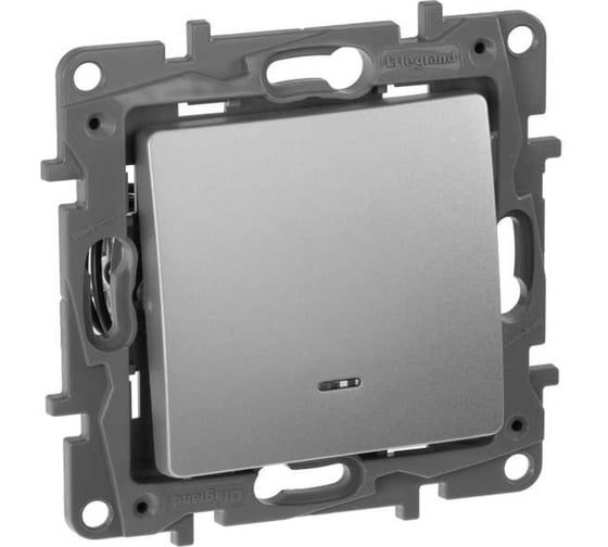 Переключатель IEK ETIKA 1-клавишный, с подсветкой/индикатором сх6L 10АХ б/к алюминий 672415
