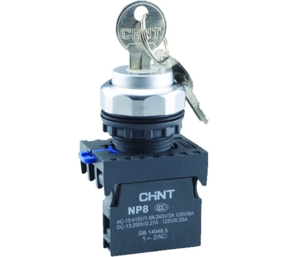 Переключатель ключом CHINT NP8-11Y/22, 2 положения самовозвратом, 1НО+1НЗ, IP65 (R) (уп. 10 шт.) 578670