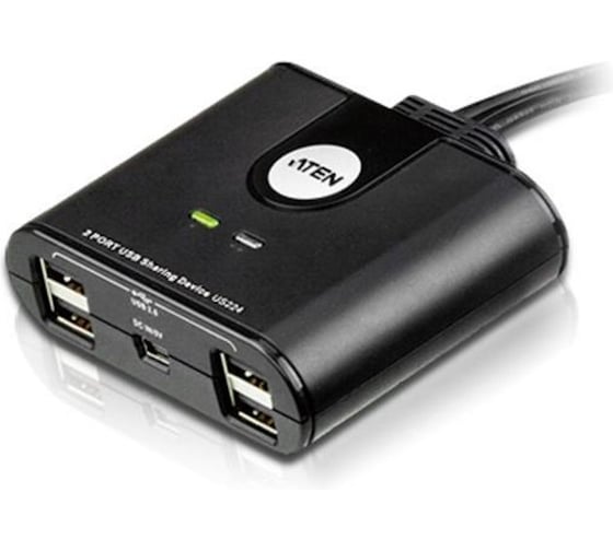 US224-AT – USB Переключатель ATEN US224 позволяет 2 компьютерам совместное использование 4 USB-устройств: клавиатуры, мыши и до двух периферийных устройств. Это исключает дополнительные затраты на приобретение USB-периферии для каждого компьютера. Конструкция переключателя «все-в-одном» помогает избежать проблемы спутанных проводов: не нужно подключать 2 отдельных USB-кабеля к компьютеру.