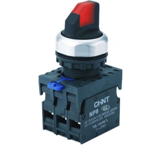 Переключатель с подсветкой CHINT NP8-11XD/214, 2 положения фиксацией, красный, AC110-230В(LED), 1НО+1НЗ, IP65 (R) (уп. 10 шт.) 667554