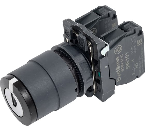 Переключатель Systeme Electric SB5 в сборе, модульный, 22мм, 3-х поз, с возвр., извл. ключа по центру SB5AG53
