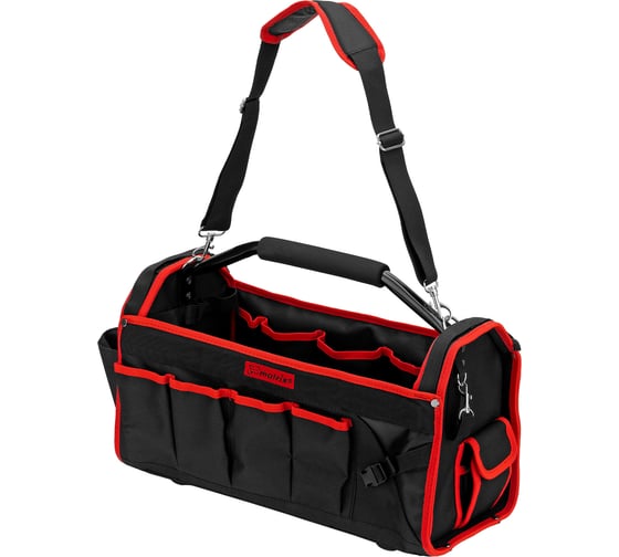 Каркасная переноска Matrix 90258 размером 490 х 230 х 280 мм удобна для перемещения и хранения инструментов. Имеет прочный каркас и весит 1,98 кг, ее легко транспортировать благодаря регулируемому плечевому ремню. В удобных карманах можно расположить все необходимые инструменты. Переноска пригодится дома, в гараже или в поездке.
