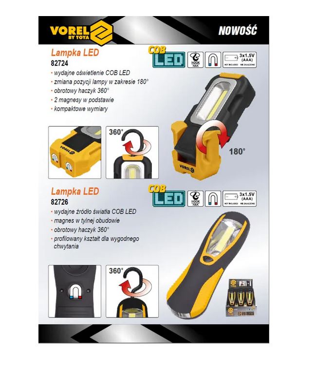 Переносная светодиодная лампа VOREL 3х1,5В 82724 - это портативная лампа, оснащенная современным COB-светодиодом, обеспечивающим сплошной рассеянный луч света.