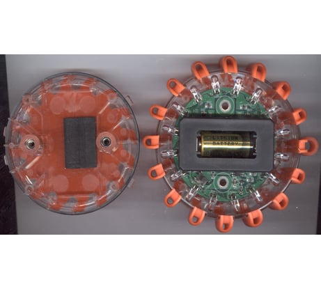 Данное устройство представляет собой аварийный дорожный фонарь. Его корпус состоит из надежного прорезиненного пластика, имеет 16 ярких светодиодов, которые видны в любую погоду.