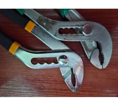 Клещи недорогие простенькие, но заслуживают внимания. Переставляются легко, без заеданий. Есть небольшой люфт, его можно убрать самоконтрящейся гайкой. На вид хлипкие, но достаточно мощные. В описании на сайте есть неточности. Клещи изготовлены из стали, покрытой хромом, не хром-ванадий. 5 позиций перестановки, не 9. Но от этого они хуже не стали. Пробовал двумя руками сдавить клещами каленый болт головки блока цилиндров. На резьбе и на головке болта отались еле заметные вмятины. Зубья клещей форму не потеряли. Рукоятки клещей при сжатии прогибались, но сломать их даже двумя руками не получилось. Качество металла то, что надо. Покрытие рукояток хорошее. Оно не сдергиваются, как у дешевых клещей, и в руках не проскальзывает. Покупал их в качестве съемника пружинных хомутов. Есть несколько мест, куда побыстрому можно добраться только такими. Толщина металла рукояток 4,6 мм, ширина губок 8,9 мм, глубина захвата 30 мм, высота захвата 50 мм. В целом клещи понравились.