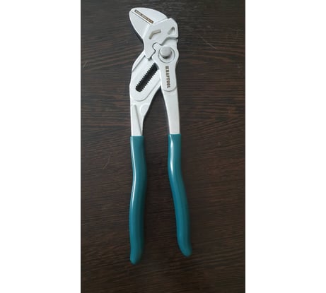 Хотел попробовать книпексовский механизм, но без серьезных затрат. Оказалось очень даже удобно! Тем, кто не видел, как это работает, попробую объяснить. У инструмента есть два основных люфта. Первый появляется если нажать и удерживать кнопку. В этом положении перемещая ручки одтносительно друг друга можно выставить фиксированный размер гайки. Он гарантированно сохранится в процессе работы. Для фиксации размера просто отпускаем кнопку. В этом положении у ручек сохраняется ограниченный люфт на разведение, что позволяет немного расставить губки, подлезть, обхватить гайку, и зафиксировать ее нажатием на ручки. Далее после каждого оборота, достаточно просто отпускать и нажимать ручки, чтобы переставить ключ, надежно сохраняя выставленное значение размера гайки. Теперь про конкретный инструмент. Весь механизм люфтящий и, к сожалению, не знаю, таков ли он у оригинала, вполне возможно, что это его конструктиваня особенность. Однако на работспособность это в любом случае никак не влияет! Инструмент позволяет производить работу одной рукой и мощно захватывать большие гайки. Достаточно хорошо сидит в руке, эстетично выглядит и четко работает. Расстройство доставило отсутствие шкалы размеров гайки, с ней очевидно было бы быстрее выставлять инструмент в рабочее положение. Но опять же проблема не большая. Также удивило, что на них не подходят книпексовские резиновые губки от оригинала этих клещей, на крафтуле просто нет соответствующих зацепов, а сама геометрия губок заметно отличается. В общем и целом это универсальный и очень удобный инструмент, но других ключей он не заменит. Тому виной достаточно тонкие ручки и механизм, что вызывает опасения при работе с прикипевшими соединениями и большими диаметрами гаек. Обычный разводной ключ я в комплекте все равно оставил. ВНИМАНИЕ! Это довольно короткие клещи, длиной с хорошие пассатижи. Будбтье внимательны!