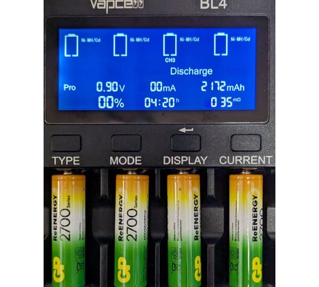 Заметный разброс внутреннего сопротивления. При первоначальной (до)зарядке после покупки у трёх штук 32-35 мОм, у одной 75 мОм. При зарядке после полного разряда разброс заметно уменьшился, стало 49-50 и 64 мОм. Ёмкость немного недотягивает до заявленной. Высадил полностью (до 0,9 В) в режиме разряда ЗУ Vapcell BL4. Затем заряжал током 750 мА. Получил результаты от 2346 до 2422мА·ч и приблизительно 3,7 Вт·ч. Учитывая, что рекомендованный зарядный ток 260 мА, то есть в три раза меньше, можно ожидать немного бОльшие цифры. (Но это значит потратить 10 часов на зарядку.) Срок годности на самих аккумуляторах не указан. Учитывая, что упаковка сразу отправляется в мусор, потом будет сложно понять, что они уже старички и пора менять.