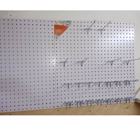 Чтобы повесить перфопанель на стену, нужно придумывать и сооружать крепление. С таким же успехом можно взять лист оргалита и перфорировать самому.