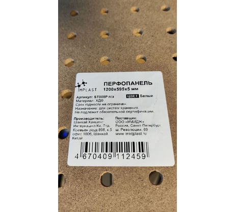 Перфопанель IMPLAST 1200*595*5 мм белая ST008P П/Э