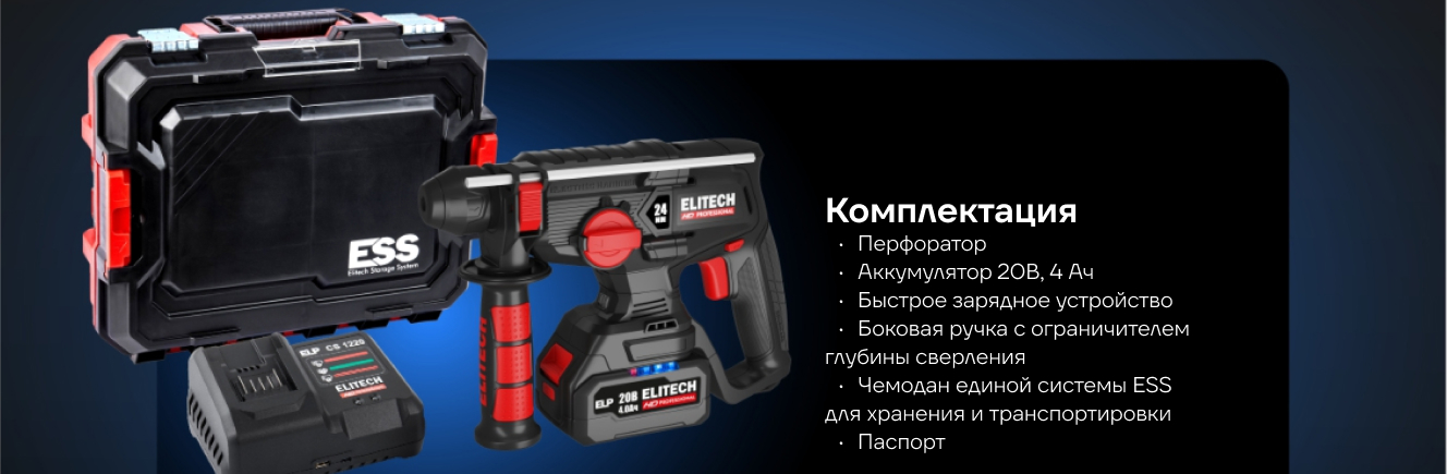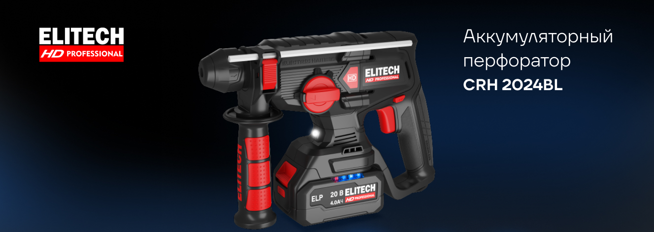 Перфоратор аккумуляторный Elitech HD CRH 2024BL (SDS+, 2,5Дж, 20В, 1х4Ач) 214705