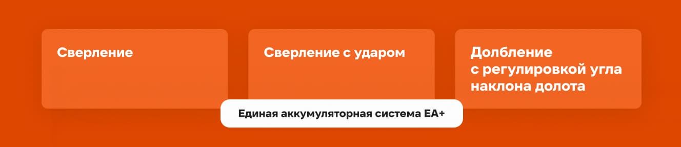 - Технология EA+ - перфоратор работает с аккумулятором, который подходит к десяткам моделей серии