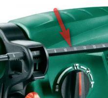 - Кнопка блокировки от случайного нажатия клавиши "пуск" уменьшает риск непреднамеренного включения перфоратора;