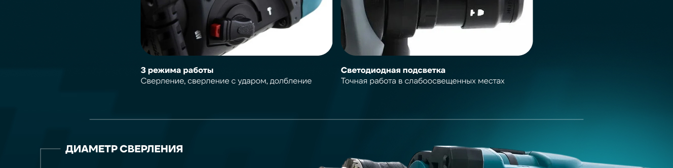 Комфорт использования Прорезиненная рукоятка с упором на конце предотвратит выскальзывание из руки. С помощью кольца можно подвесить перфоратор для удобного хранения. |