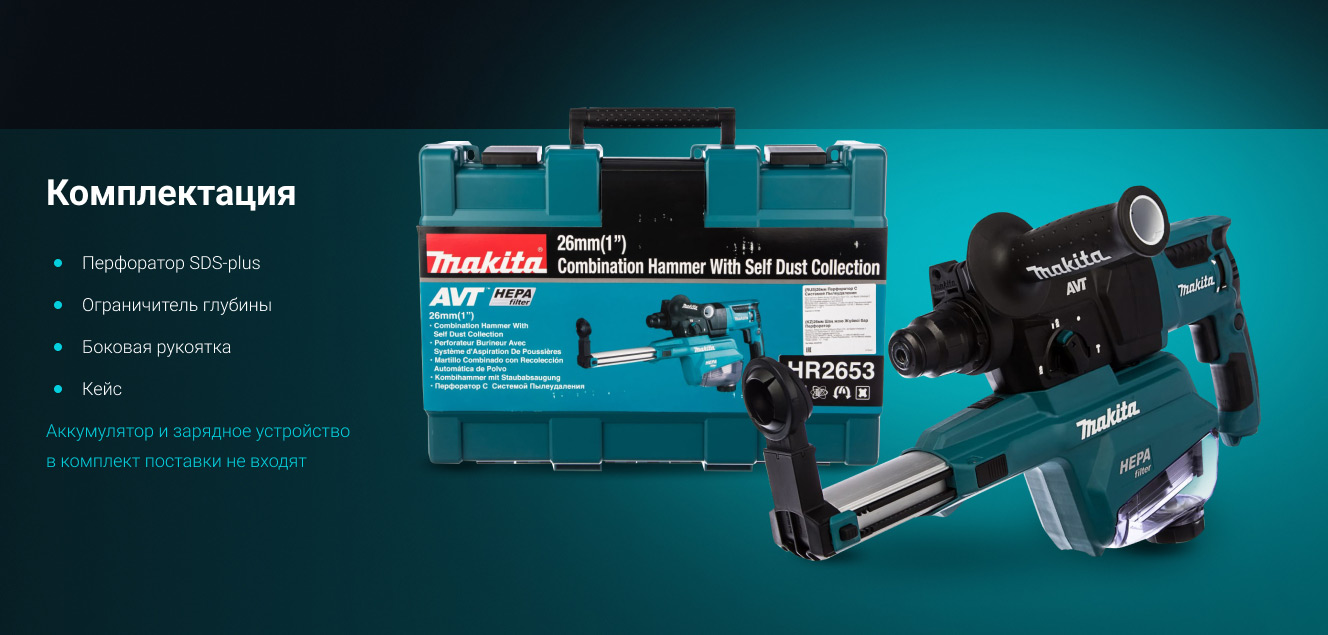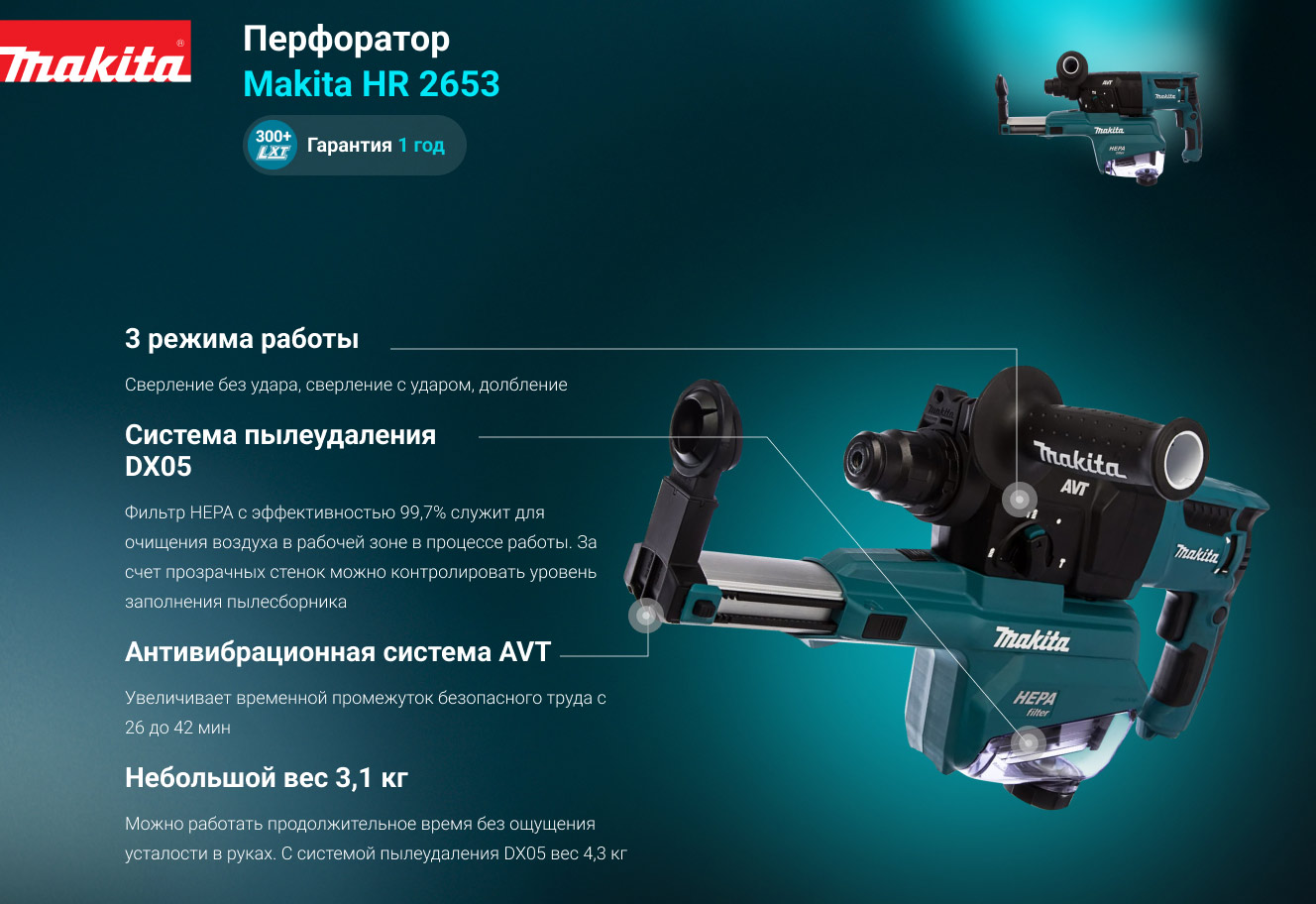 - Предохранительная муфта - для защиты Makita HR2653 и оператора при заклинивании бура;