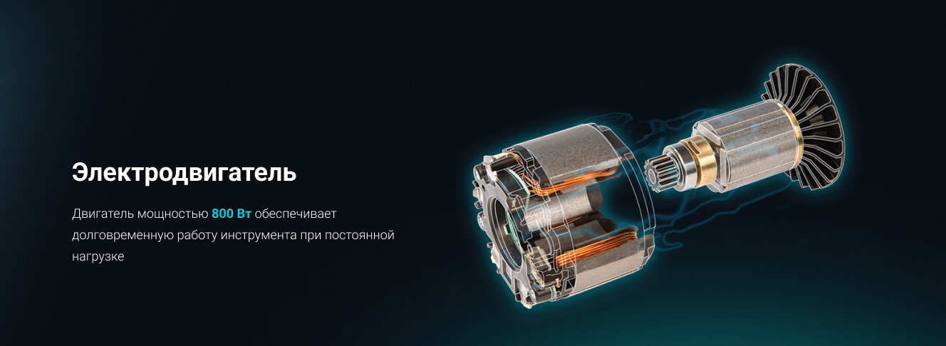 - Поворотный щеткодержатель (одинаковый крутящий момент при левом и правом вращении);