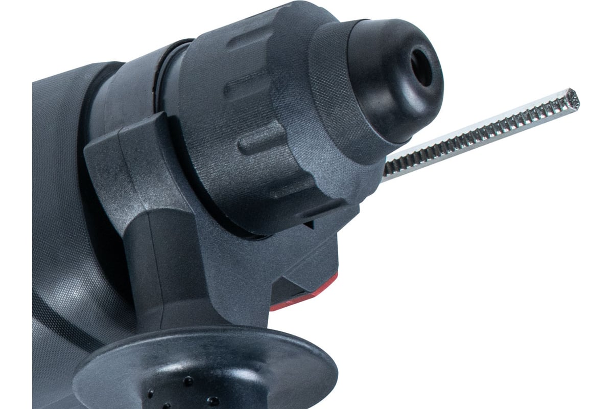 Патрон SDS-plus обеспечивает быструю замену оснастки без вспомогательных инструментов, сокращая время простоев.