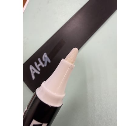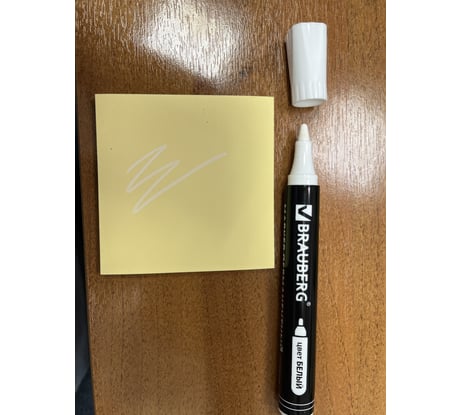 В принципе, маркер не плохой. Мне понравился и своим исполнением и хорошей толщиной стержня, который позволяет делать лекочитаемые несмываемые белые надписи. На темных поверхностях пишет хорошо . Стержень пока держит форму и нерасползается, но а так время покажет. Из недостатков, хотелось бы отметить тот факт, что не всегда с первого раза получается однородная линия, приходится по второму разу проводить в тех местах, где линия получилась недостаточно четкой. И ещё, если делать длинную надпись, то под конец стержень начинает хуже писать. Скорее всего связано с тем, что быстро сохнет. Если закрыть колпачком, то через время снова хорошо пишет, все восстанавливается.