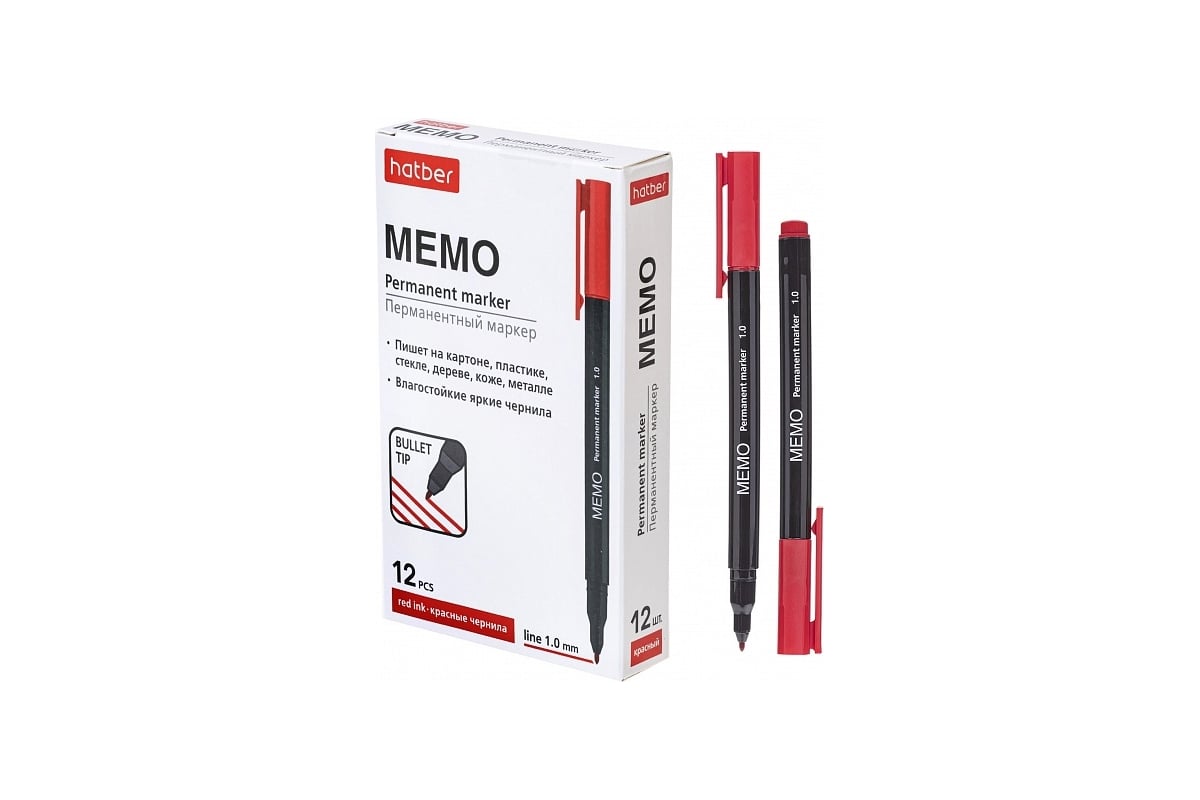 Перманентный маркер Hatber Memo закругленный, пишущий узел 1 мм, красный 12 шт 072614
