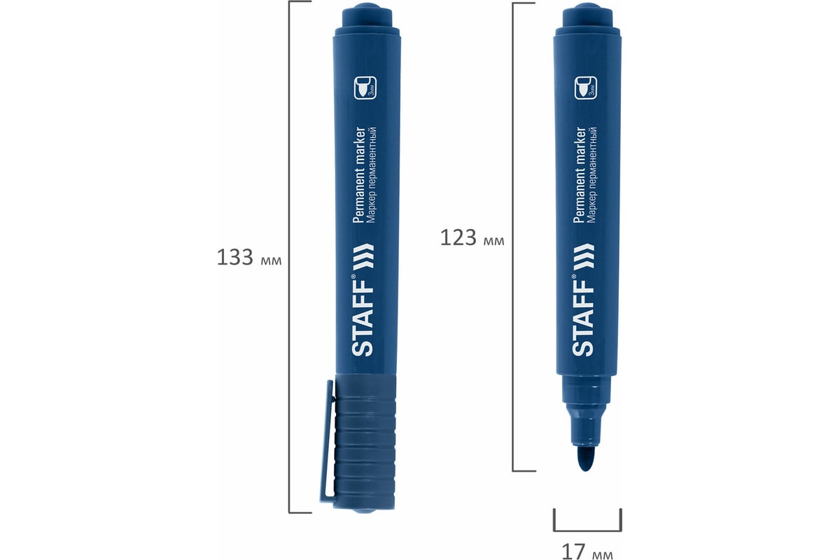 Перманентный маркер Staff Basic Budget Pm-125, синий, круглый наконечник 3 мм 152175 предназначен для письма на различных поверхностях.