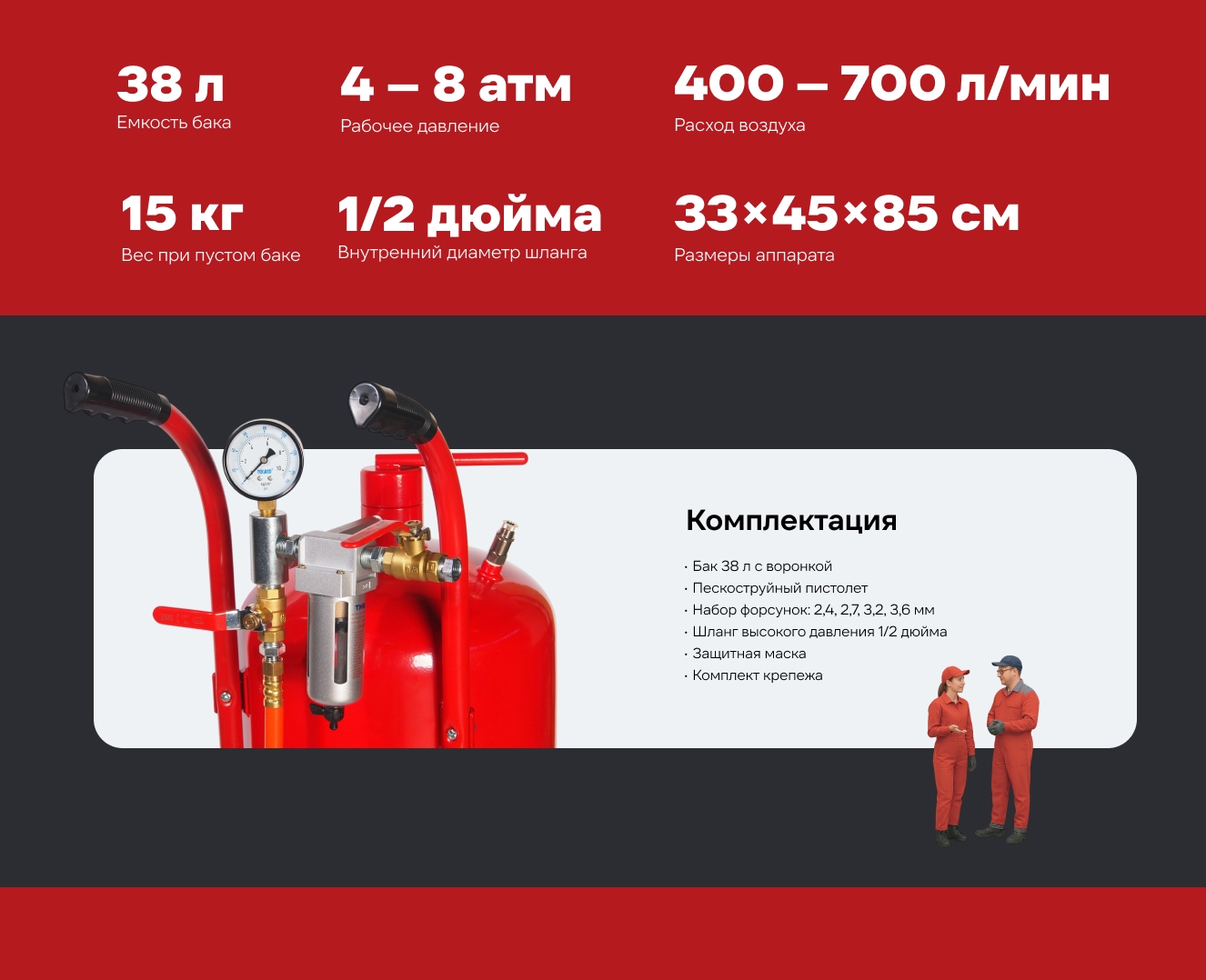 Пескоструйный аппарат JTC шланг 1/2, макс. давление 250 PSI, объем 38 л JTC-5324 является незаменимым помощником в производственных цехах и автосервисах. Резервуар модели имеет специальное покрытие, которое защищает оборудование от влияния коррозии и гарантирует долгий срок службы. Диапазон рабочего давления составляет от 65 до 125 фунтов на квадратный дюйм, что способствует высокой эффективности и производительности. Специальные ручки обеспечивают маневренность и легкость управления.