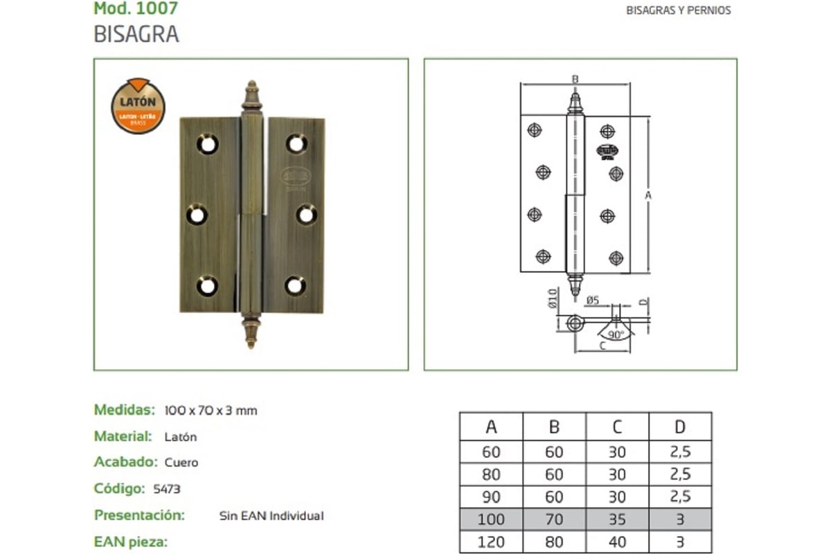 Сопутствующие товары для левой петли Amig 1007-100х70 A (D)