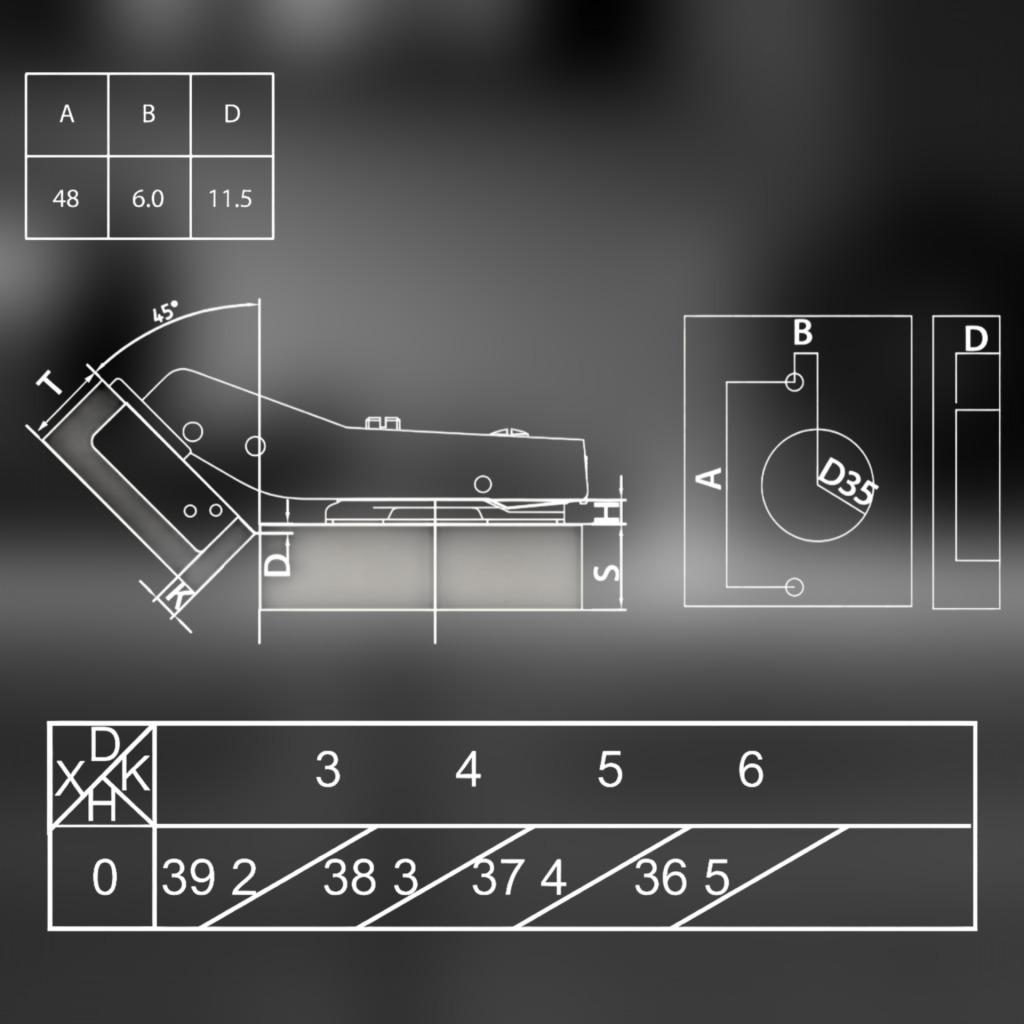 Петли четырехшарнирные 45 градусов обычно используются в кухонных угловых модулях расположенных над мойкой, а так же, иногда, и в боковых модулях. Фасады в таких модулях крепятся к боковым стенкам под тупым углом. Без таких петель невозможно обойтись, если Вы хотите собрать угловой кухонный гарнитур.