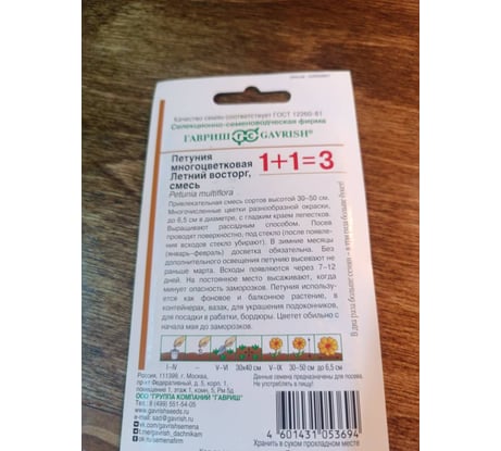 Петуния ГАВРИШ Летний восторг, смесь многоцветная 0,1 г 1+1 1071860147