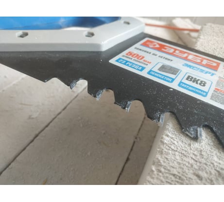 Отличная пила, построил дом 2 этажа из газоблока D500, все зубья на месте. Полотно не гуляет, надпилы с трех сторон и отрезаю в размер +-1 мм. Длинна как раз удобная для реза 25см блока.