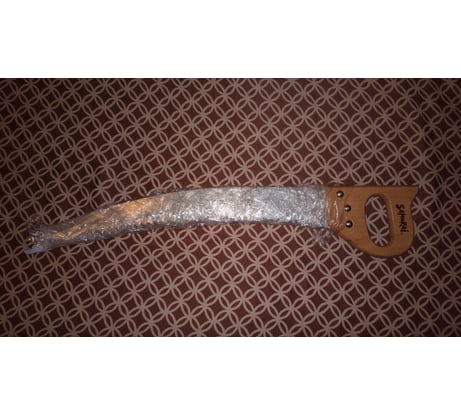 Крайне эффективная ручная пила с большими зубьями как у двуручной. Будьте осторожны, они крайне острые и жёсткие. На второй день использования после распила ветки воткнул в колено и повредил небольшую артерию. Из небольшой ранки мини-фонтанчик крови. Посвящение в самураи? :)