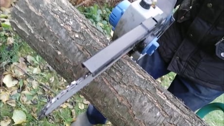 в целом полностью удовлетворяет моим запросам, но надо заменить цепь на 45 звеньев для мини-пилы 8" (изначально стоит на 46 звеньев), иначе не хватает подтяжки цепи.