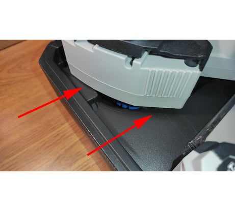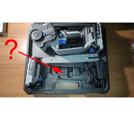 Кейс - выброшенные деньги. Кстати: его размеры 330х130х300 мм (ДхШхВ), а не как указано на сайте. Этот чемоданчик пригоден лишь довезти инструмент от ПВЗ до дома: пила туда помещается только полностью разобранная. Более того. Как прошлый раз с шуруповертом DEKO (писал отзыв здесь): кейс от какого-то другого инструмента. Во-первых, есть отделения не нужные для данной комплектации (другая зарядка?), во-вторых, даже разобранная пила в полость для хранения полностью не помещается. Фото со стрелками привожу. «Понравился» саморезик крепления защитного кожуха - фото тоже привожу. Впрочем, в бобышке удалось без проблем нарезать резьбу М4 и на первый раз поставил винт (L=17 мм). Как альтернативу можно и шпильку - тогда кожух можно снимать неоднократно...