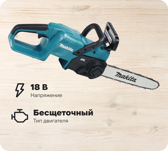 Максимальная скорость цепи составляет 7.7 м/с. Безынструментальная крышка цепи позволит быстро подтянуть провисшую цепь или заменить режущую гарнитуру. Инерционный тормоз остановит цепь за доли секунды. Цепная пила работает на аккумуляторной платформе LXT. В комплект входит BL1830B х1 штука и зарядное устройство DC18SD. Данный тип аккумулятора подходит более чем для 400 инструментов Makita из линейки LXT, а это значит, что его можно использовать не только с садовым инструментом, но и с шуруповертами и перфораторами Makita.