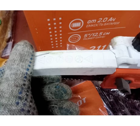 Отличная пила за свои деньги. Подошли АКБ от снеговой лопаты и триммера. Отработал цепочкой 12 бревен. 6 кустарников. 1 дерево весь верх.