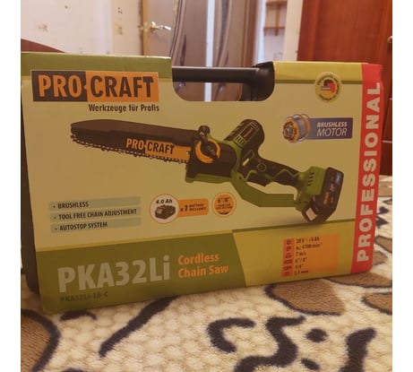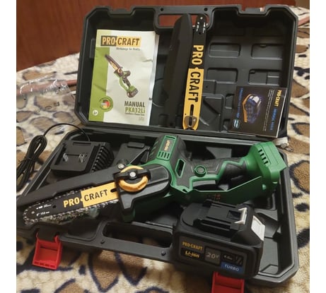 Долго выбирал в категории - аккумуляторная мини пила. Работа на дачном участке наверху по обрезке деревьев. и т. д. Для глобальных задач есть тяжёлая кавалерия - бензопила,поэтому нужна была мини пила. Выбор сделал в пользу фирмы PROCRAFT. Не пожалел. Доволен всеми характеристиками пилы и её работы.В комплектации заявлено всё, как указанно. Приятно, что дополнительно включено полотно,цепь, аккумулятор,зарядка.Плюс -кейс, что также немаловажно.В именитых брендах такого порой не найти. Ну, ещё раз повторюсь .это большой потенциал работы этой малютки PROCRAFT PKA32Li . Смотрите на эту тему видео в инете. Рекомендую.