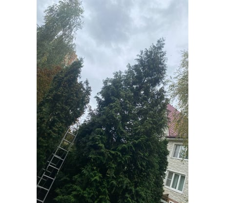 Была туя и нет теперь, на очереди высокая, надо подровнять что б вровень была. Только надо надевать очки, опилки летят только в путь