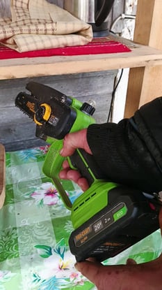 При полностью заряженном аккумуляторе, новенькой цепи, полным бачком масла, за две минуты интенсивного пиления с усилием на трехсантиметровой ветке груши - легкий пропил миллиметра на три. За это время дешманская сабельная аккумуляторная делает пропил на сантиметр. Если покупаете как альтернативу большой электрической цепной пиле на поводе, и думаете, что это переносное изделие будет удобнее - ошибаетесь