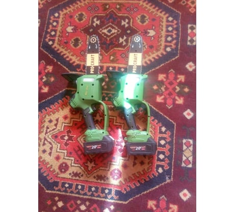 На момент покупки, у меня уже была такая пила, так что я знал, что приобретаю. Дело в том, что именно такую пилу РКА-20, очень трудно найти (достать), на рынке, или в магазинах которые торгуют электроинструментом, а я хотел только такую, и в итоге, пила меня не подвела. Моя первая пила, в течении 4-5 сезонов (я даже и не знаю точно, когда я ее купил, так давно она у меня), мне помогала без всяких фокусов, все что от нее требовалось, с тем она без проблем и справлялась. На эту пилу трудно найти запчасти, ну в частности например звёздочку, да и шину, именно такую, найти невозможно. Поэтому и было принято решение, купить точно такую же, про запас, вряд ли, для дачи, можно выбрать пилу лучше, включая даже как бензо, так и со "шнурком". Пила не боится трудностей, и даже ветки (стволы), толщиной под 30 сантиметров, грызет как ягуар, вы не дождетесь от нее, что она уйдет в защиту, эта пила проходит любые ветки, как тот вездеход. К тому же, она очень мобильна, увертлива, и редко когда приходится пилить двумя руками. Шина имеет такой удачный размер как в длину, так и по высоте, что инструмент может быть полезен не только как пила, а и как топор, и даже секатор, то есть, если вы спилили большую ветку, можно пилой вести просто как топором, спиливая с этой ветки, ветки поменьше, получается гораздо быстрее, и эффективнее топора. Рез у пилы всегда ровный, масло, ни разу не помню, когда в течении дня доливал, всегда в конце работы только сливал остаток, поскольку как пилу не ложи, на следующий день, под ней лужа, это и с новой так же, видно это их беда, так что масло лучше перед хранением сливать. Что касается аккумуляторов, то если не заниматься заготовкой дров, а просто использовать пилу, например на дачном участке, то два аккумулятора, хватит пилить, с утра до вечера. Обе пилы, шли в картонной коробке, я для них, приобрел вот такой саквояж, туда ещё и сабельная пила влезла. Есть в сумке место, и для запасных цепей, шин, пилок ( полотен), и даже ещё и масло поместится. Пилы очень надёжные и выносливые в работе, не греются, ни сам агрегат, ни шина, как говорится, такой инструмент находка, у любого хозяина, во всяком случае лишним точно не будет.