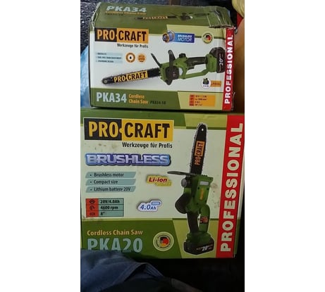 Первая моя пила РКА 20, отличная вещь, брал год назад! Полет отличный! Это уже вторая пила, из этого сегмента - РКА 34! РКА 20 была даже дороже, шла с шиной на 20 см и одной цепью, настольным зарядным устройством и одним АКБ на 4 ач. РКА 34 взял дешевле по акции перед Новым годом! Комплектность, даже богаче - 2 шины 10" и 12" (25 и 30 см, соответственно) и по одной цепи, зарядка на 20 вольт в розетку и АКБ на 3 Ач! Все соответствует описанию на коробке, однако в инструкции указано, что АКБ на 4Ач?! Но не суть! ОБЕ пилы, отличные помощники, как по обрезке деревьев, так и заготовки дров в небольших количествах, а также в строительстве! Цепи в комплектации у обоих очень качественные и надежные! Шины крепкие, тяжелые, даже у проф бензопил слабее! АКБ на 3 и 4 АЧ хватает на очень долго, но очень советую прикупить еще один АКБ на 4Ач, тогда перебоев в работе не будет точно, это если дрова заготавливаете!? А, если пользоваться не часто, так по мелочи, обрезка деревьев, то хватит вам и одного АКБ в полне! В РКА 34, дополнительно в подарок положили масло для цепи, 450мл. Мелочь, но приятно!