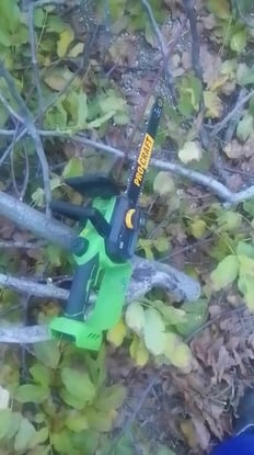 Отличная пила. Лёгкая, можно смело одной рукой справляться,но в нижних положениях верхняя ручка облегчает распиловку. Давить сильно не надо это всё-таки не большие электро и бензопилы. Если попадает мелочь или трава, забивает подающий механизм,лучше остановится и прочистить. Батарея 3 х амперная работает довольно долго, не надо каждые 20 минут . заряжать. Зарядка не быстрая и поэтому хотелось чтобы был второй аккумулятор ,но его нет в комплектации. Приятно в коробке две бутылочки масла. Две шины и цепи к ним. Впечатления отличные подлазит в такие места что ни чем другим не сделаешь! ДОВОЛЕН!