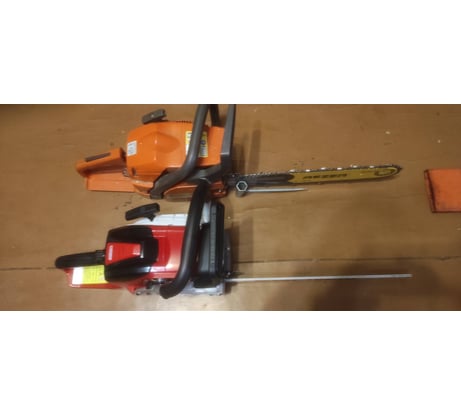 Отличная пила! Хорошая сборка. Пластик без запаха из коробки. Цепь не мусор для обкатки только, хорошая агрессивная цепь. Работал разными, сравнивать буду с хускварной137, они близки по кубатуре и размерам, фото приложил. Вес сопоставимый, а вот мощность заметно больше - как-никак 4х канальная поршневая. В руки легла как родная. Пила ухватистая и маневренная, приятно работать. Не орёт, звук работы благородный. Заводится без запинки. Удобная натяжка цепи. Для пробы завалил сосну 0,6 куба и нашинковал. Работать одно удовольствие. Со штилем 180 даже и не сравниваю, он хускварне137 то проигрывает а тут и сравнить нечего, разве ценник - тут он лидер несомненный. На крышке сцепления стоит брызговик, как на лесоповальных пилах, у моей хускварны 268 такой. Опилки отбивает вниз. Пила очень порадовала. Теперь немного о недочетах. Щиток тормоза на двух опорах, но жесткость недостаточная. При нажатии на левый край, он доходит до ручки пилы, а не срабатывает. Дополнительная опора имеет значительный люфт и больше роль декорации выполняет при таком исполнении. Сам томоз работает нормально. Надеюсь производитель исправит этот недочет. Универсальный ключ, тот который для свечи и шины, исполнен весьма похабно. Мелочь, но ведь кому то это может не понравится. Я то лично оцениваю пилу)). И оценка - 9 из 10. Отдельная тема - связь с официальным сайтом. Два моих вопроса они проигнорировали, на другой площадке. Видимо они им показались не умными. Так я здесь ещё спрошу: воздушный и топливный фильтр, его артикул, какой подходит? Посмотрел адреса аккредитованных сервисов в городе. Не буду позорить производителя фотографиями этих забегаловок. Никто там ничего не будет ремонтировать. Понятно что фирма специализируется на электроинструментах и имеет заслуженно хорошую репутацию. А вот аккредитацию просто раздали для массовости. Ремонт сотовых с одним окошком, для примера. Могу и фото накидать, позорить не хочу, как сказал выше. И уважаемые представиели возможно изволят отвечать на вопросы, какими бы они не были. А на сайте производителя неплохо бы разместить схему с деталировкой и указанием артикулов деталей, как это сделано у иных производителей инструмента. Гарантия это хорошо, только вот инструмент как правило нужен ещё вчера, а тут ещё и неизвестные сроки ремонта. Придется либо делать самому, либо доверенному лицу, простившись с гарантией. А фильтры так вообще расходник. В чем проблема указать совместимые? А пила-отличная))