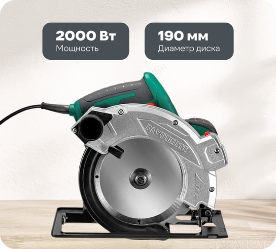 Пила циркулярная FAVOURITE 2000 Вт, диск 190/20 мм, Т24, 5100 об/мин, 45/43 мм, 90/65 мм, лазерный указатель 113200190