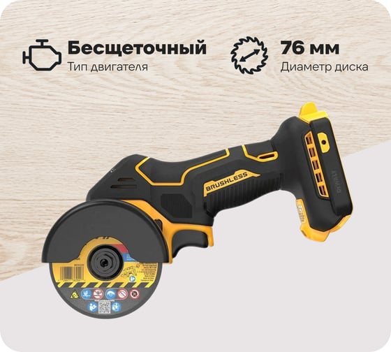 Отрезная бесщёточная аккумуляторная машина DeWALT работает с абразивными кругами и алмазными дисками 76 мм.