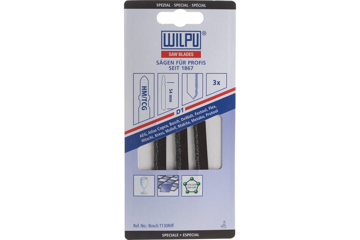 Пилка D1 Т130RIFF WILPU 288000003 является сменным элементом для лобзиков. Применяется для реза по стеклу, керамике, стекловолоконным изделиям. Пилка имеет напыление из крупнозернистого твердого сплава.