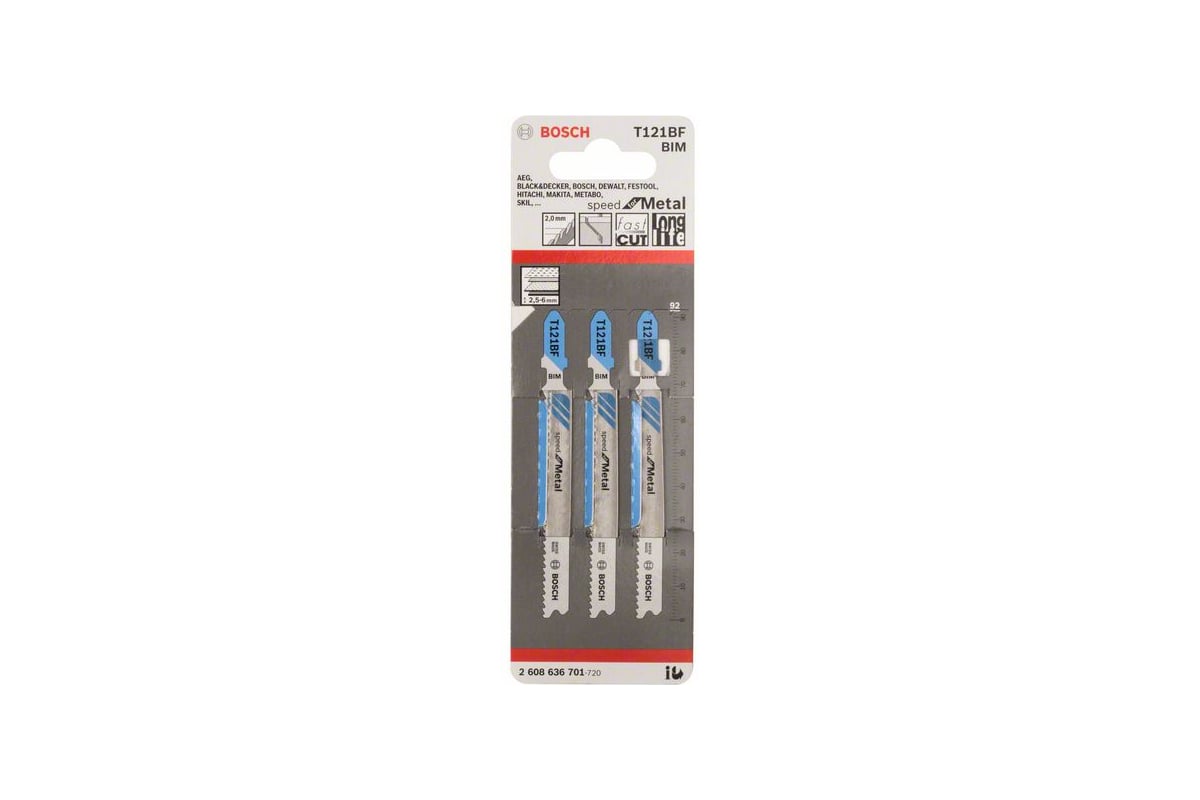 Пилки по металлу T121AF Speed for Metal, BIM (92 мм, шаг 2 мм) Bosch 2608636701