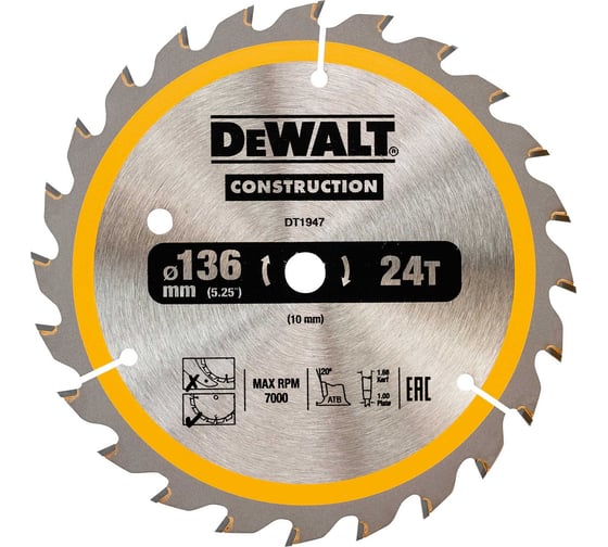 Сопутствующие товары для диска Dewalt DT1947 CONSTRUCT 136/10 24 ATB +20град