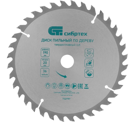 Пильный диск по дереву (190х20 мм; 36T) СИБРТЕХ 732797