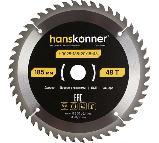 Пильный диск по дереву Hanskonner ArmorPiercing 185x30/20мм, 48 зубьев, H9025-185-20/16-48