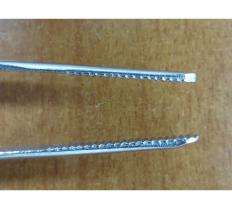 Приобрел за смешные деньги (69 руб./шт.), данный девайс. Для моих задач качество данного пинцета не подходит. Сталь, из которого изготовлен пинцет, пластичная (не упругая) и гнется от минимального усилия. Губки имеют разную толщину, что хорошо видно на фото. Отсутствует защитное покрытие. Сам материал, скорее всего, подвержен коррозии. Добавил 100 руб. и купил хороший пинцет из хирургической нержавеющей стали (совсем как пинцеты, изготовленные в СССР).