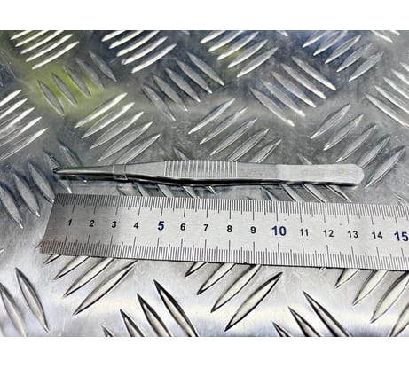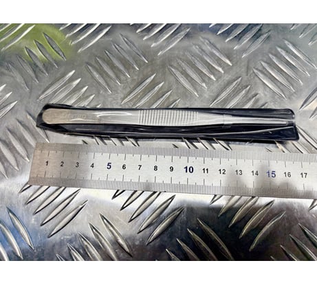 Приобрел за смешные деньги (69 руб./шт.), данный девайс. Для моих задач качество данного пинцета не подходит. Сталь, из которого изготовлен пинцет, пластичная (не упругая) и гнется от минимального усилия. Губки имеют разную толщину, что хорошо видно на фото. Отсутствует защитное покрытие. Сам материал, скорее всего, подвержен коррозии. Добавил 100 руб. и купил хороший пинцет из хирургической нержавеющей стали (совсем как пинцеты, изготовленные в СССР).